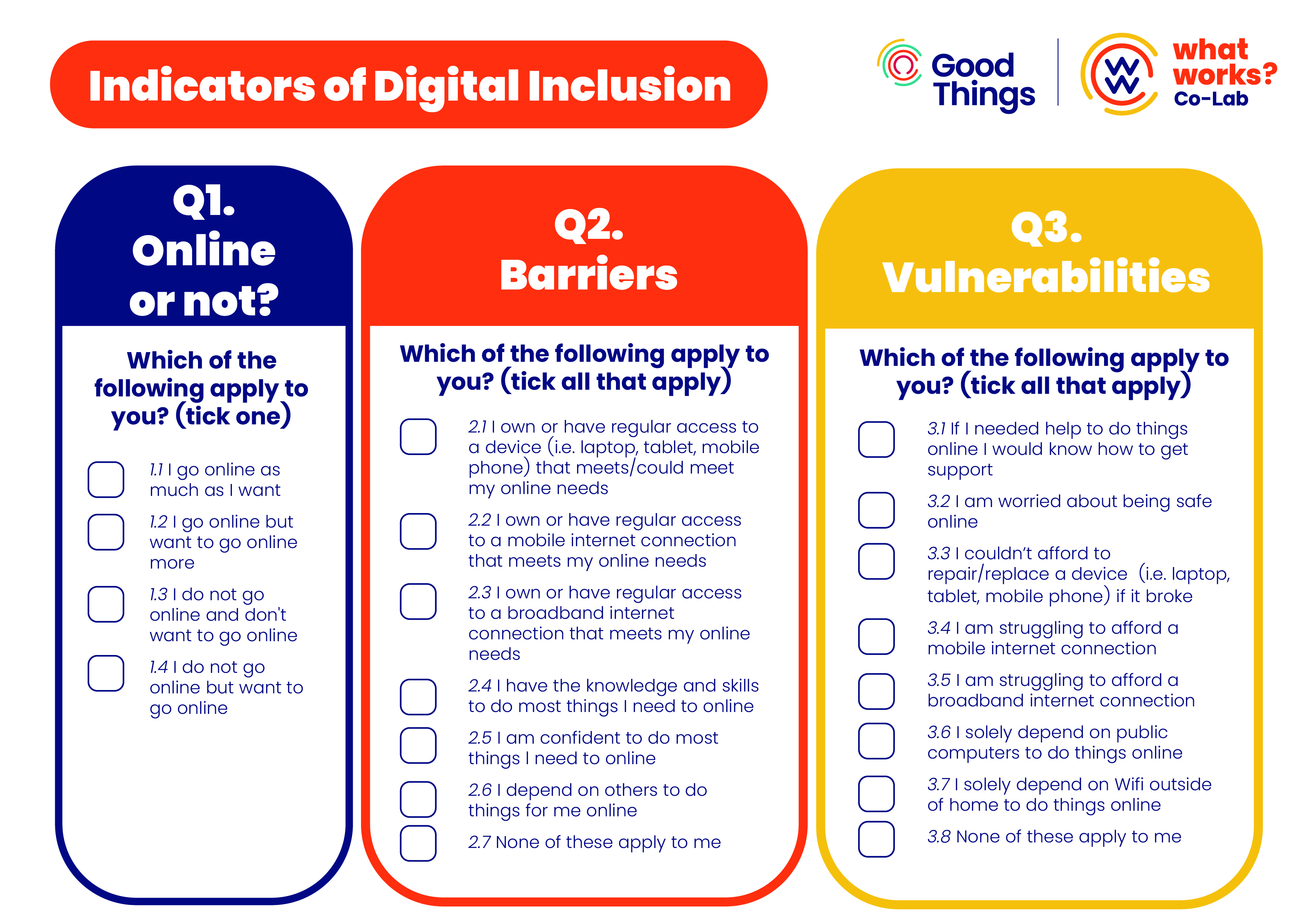 All these elements were brought together to create the core digital inclusion questions.